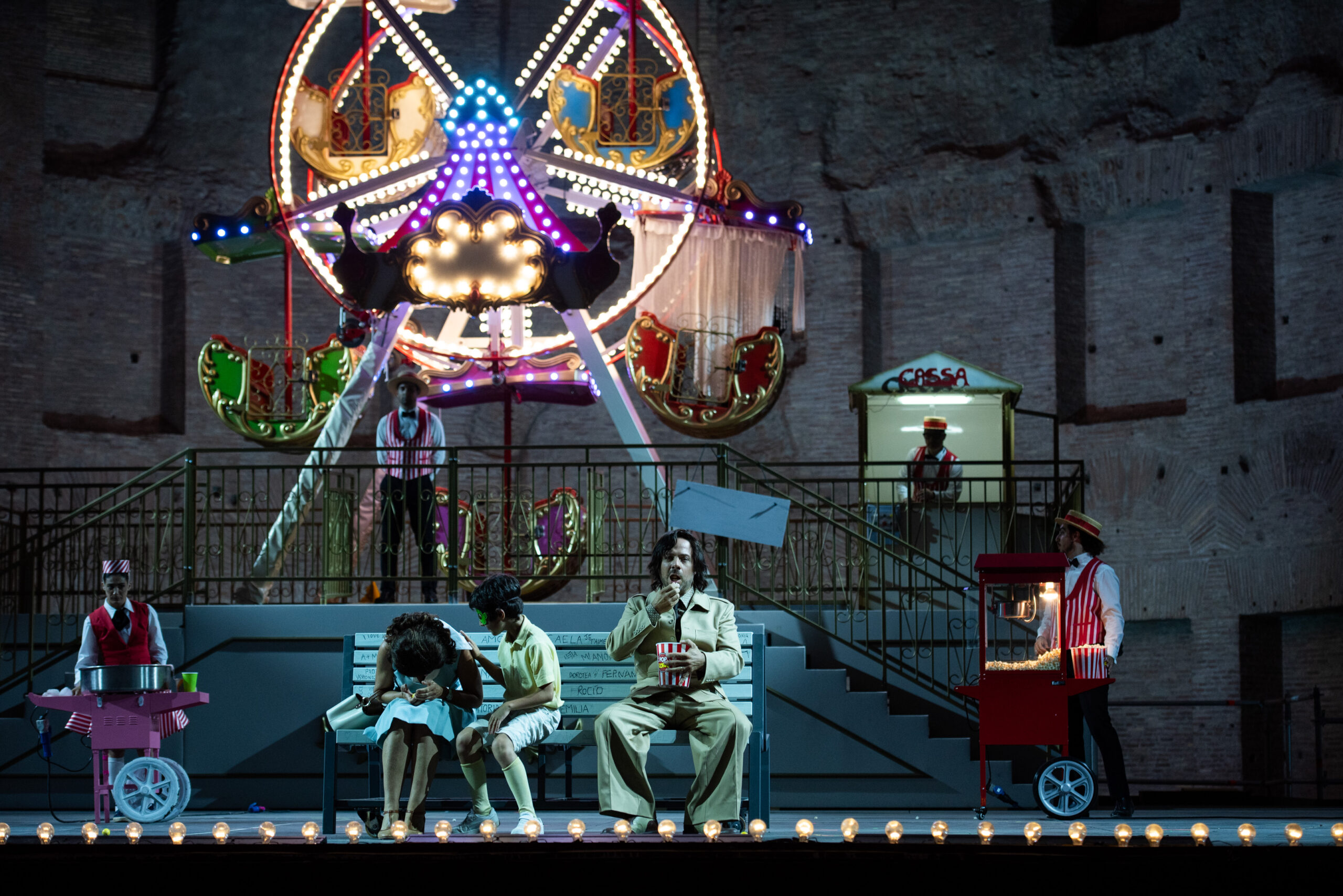Il Don Giovanni di Mozart è l’ultimo titolo d’opera del Caracalla Festival 2025 “Tra sacro e umano”, ideato da Damiano Michieletto per il Teatro dell’Opera di Roma. È andato in scena una sola volta nelle stagioni estive dell’Opera di Roma, nel 2002 in Piazza del Popolo. Domenica 20 luglio arriva alla Basilica di Massenzio con le scene di Zinovy Margolin, studiate per interagire perfettamente con l’architettura romana, i costumi di Olga Shaishmelashvili e le luci di Alexander Sivaev.